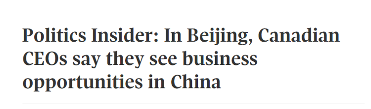 关于此访,加拿大《环球邮报》日前发表文章称:加拿大企业CEO期待中国机会。